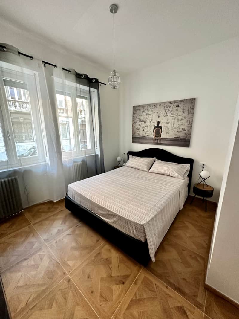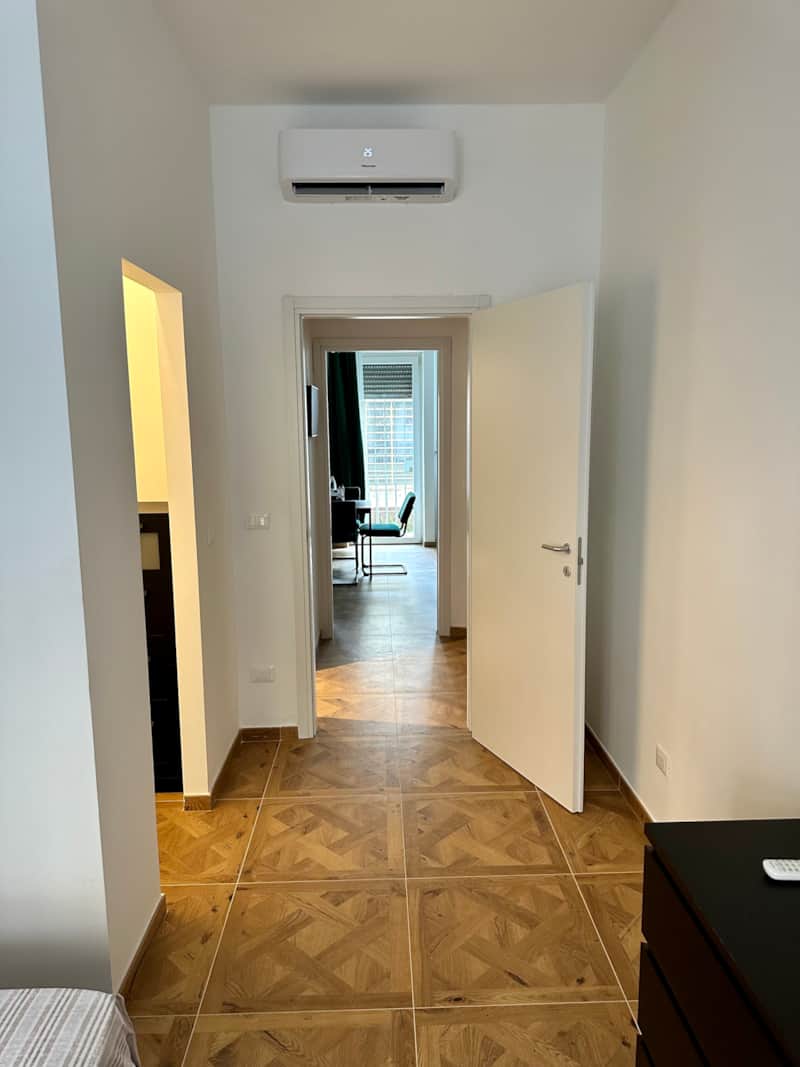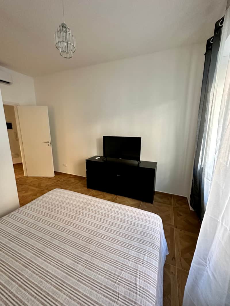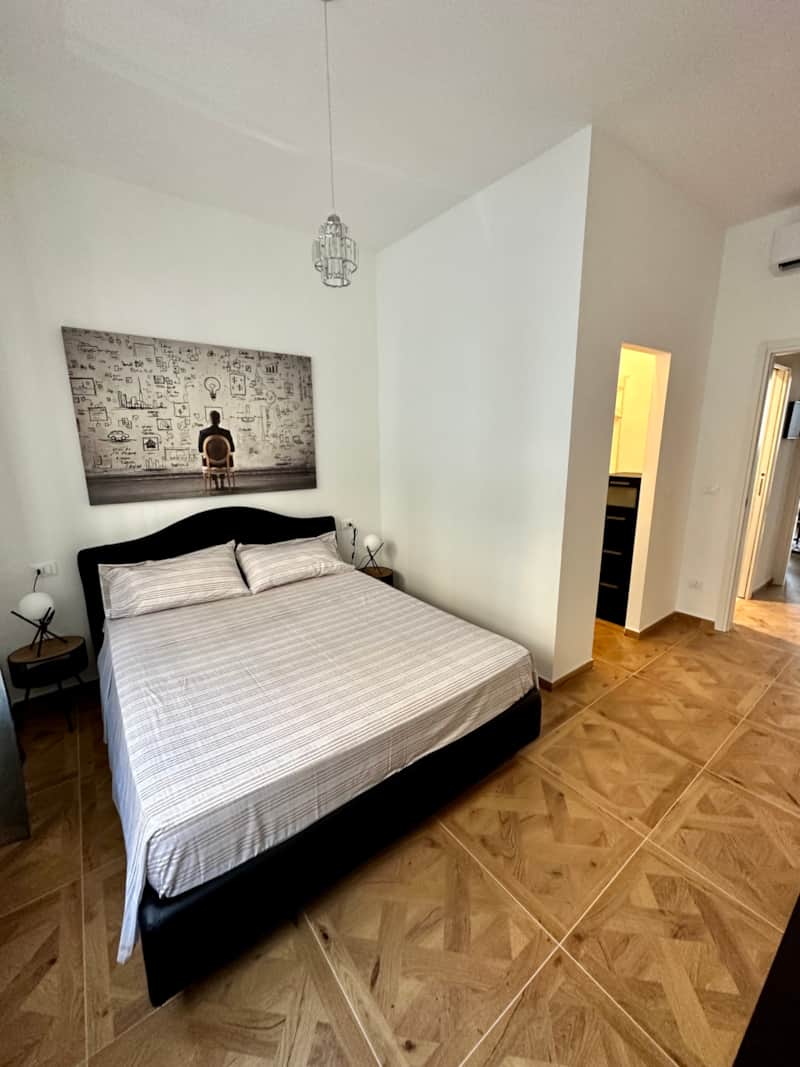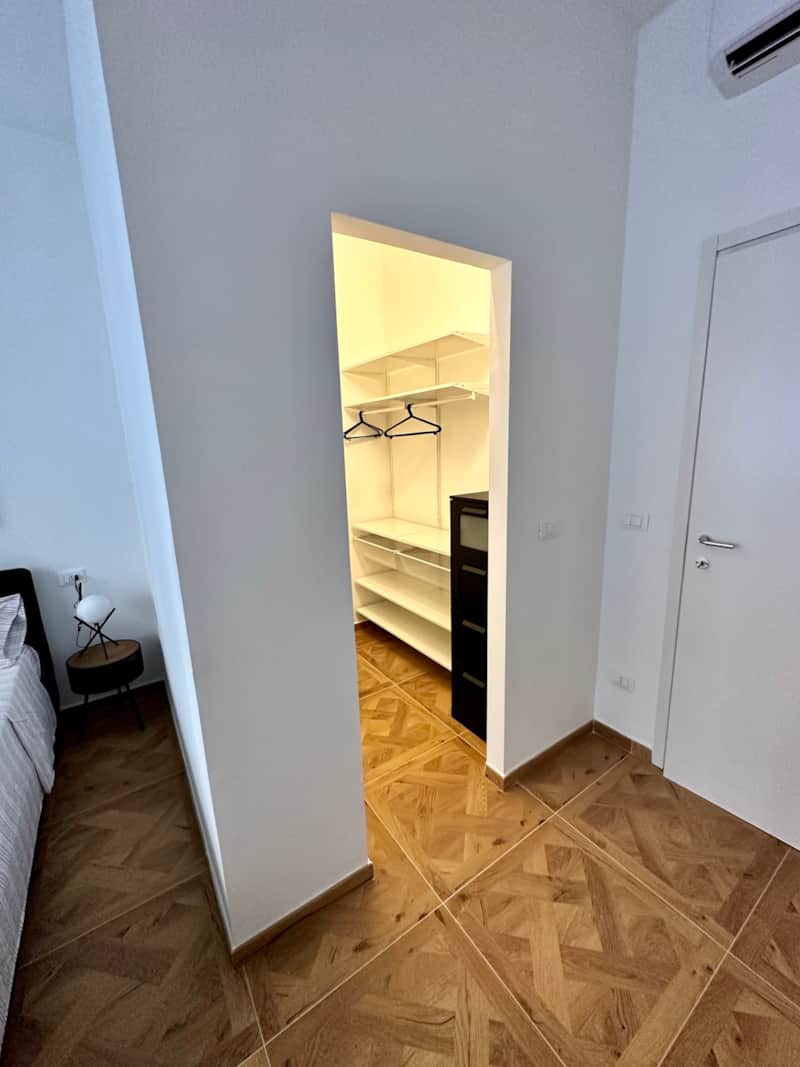 L’alloggio si compone di un grande soggiorno con cucina a vista e divano letto matrimoniale, una camera matrimoniale con cabina armadio ed un bagno con doccia.