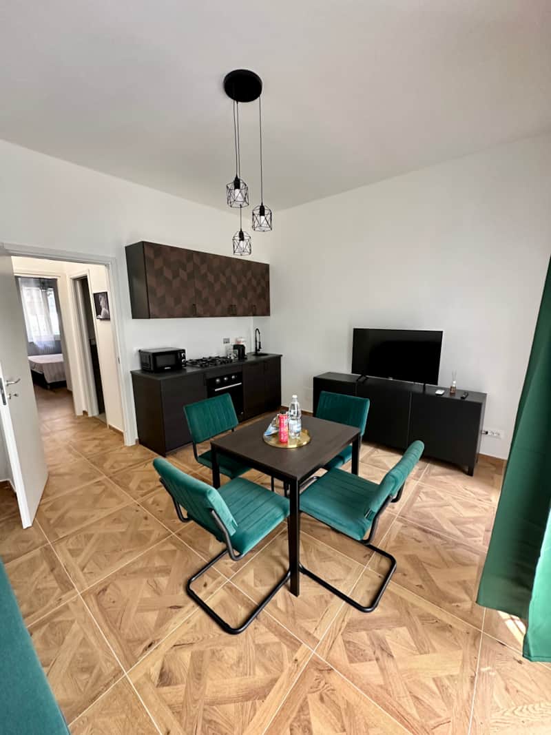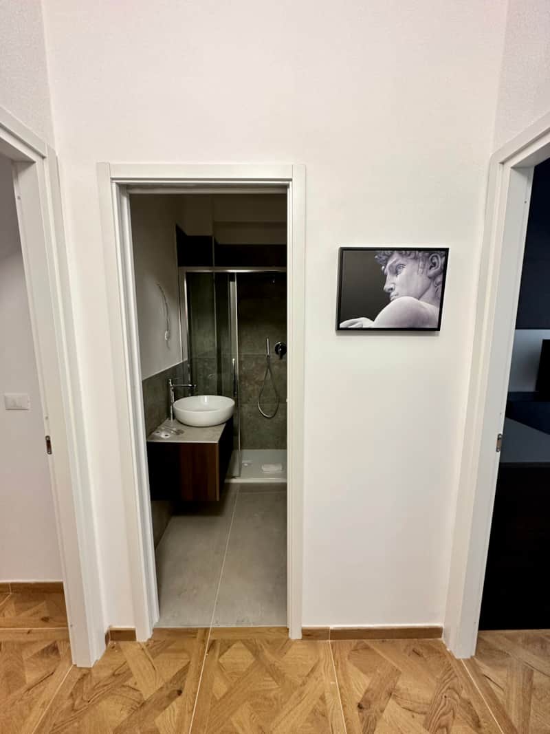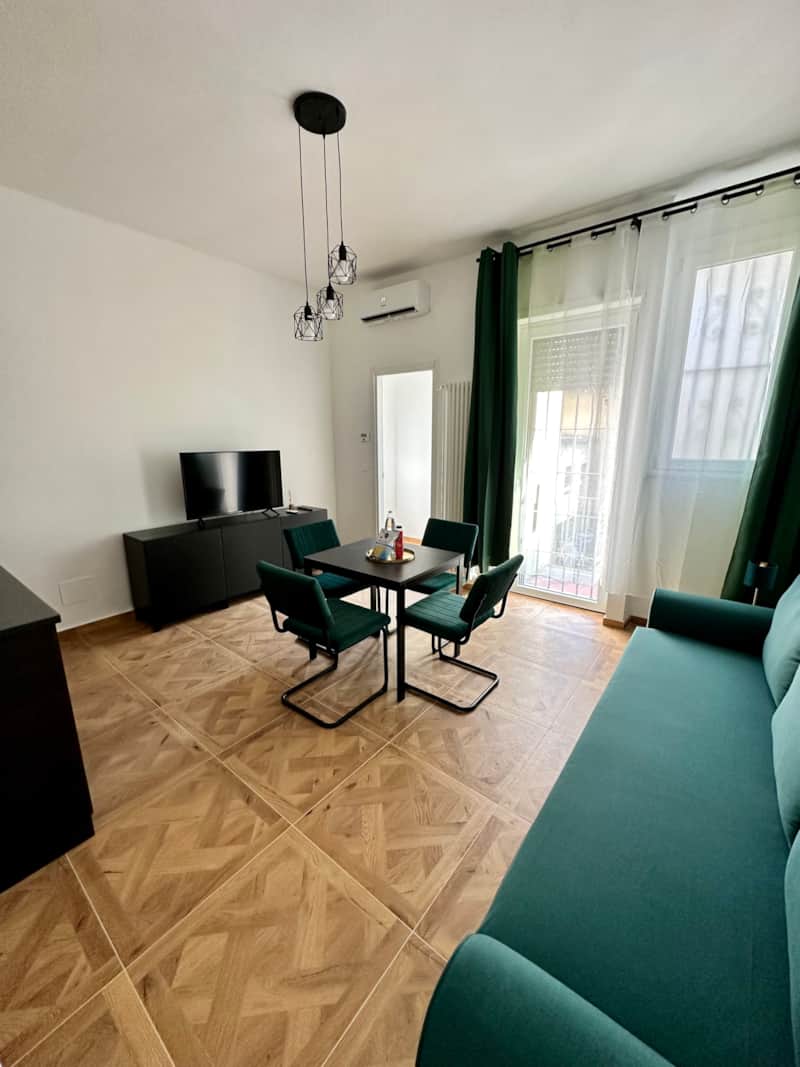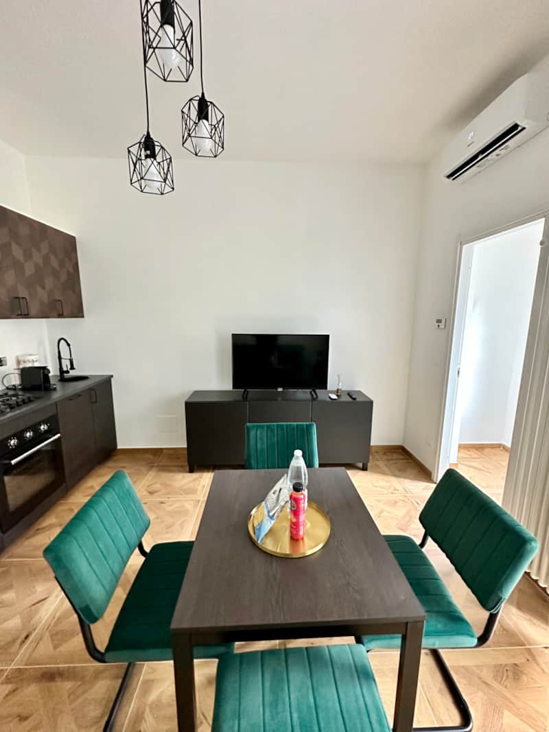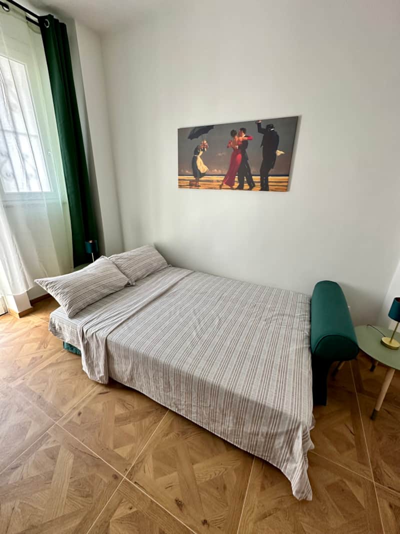 L’alloggio si compone di un grande soggiorno con cucina a vista e divano letto matrimoniale, una camera matrimoniale con cabina armadio ed un bagno con doccia.