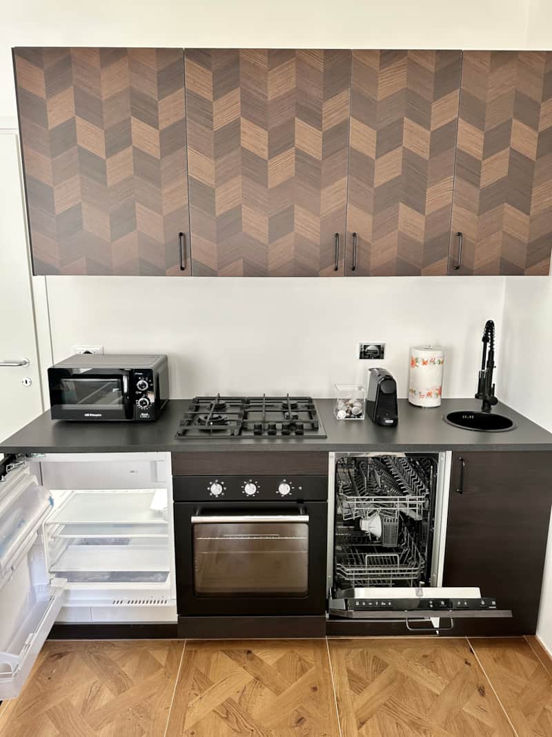 Sono presenti: cucina completa di lavastoviglie e forno, lavatrice, frigorifero, forno a microonde, macchina Nespresso per il caffè.