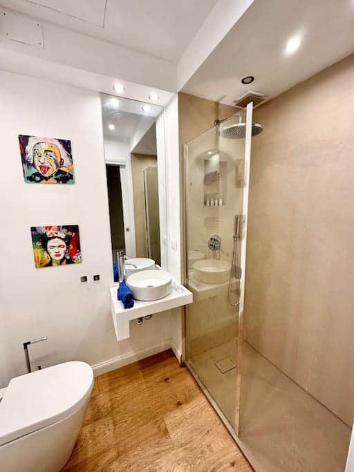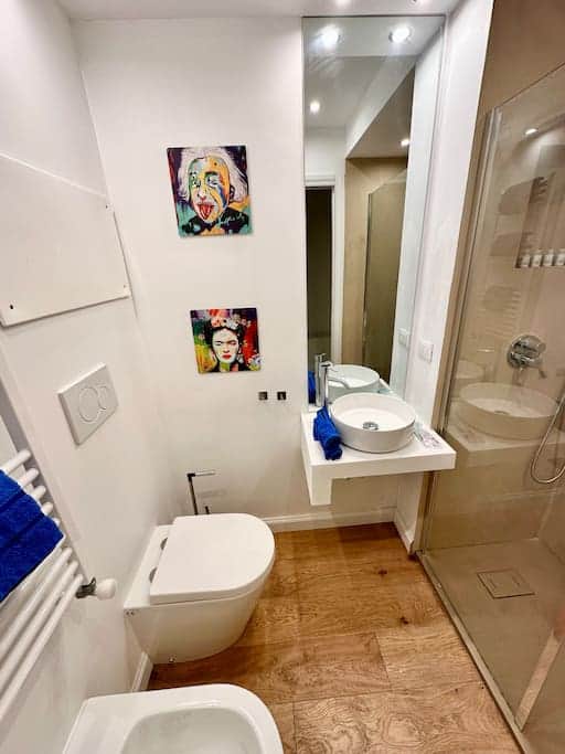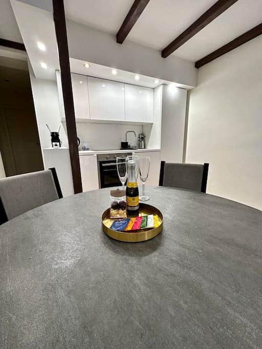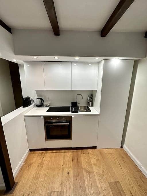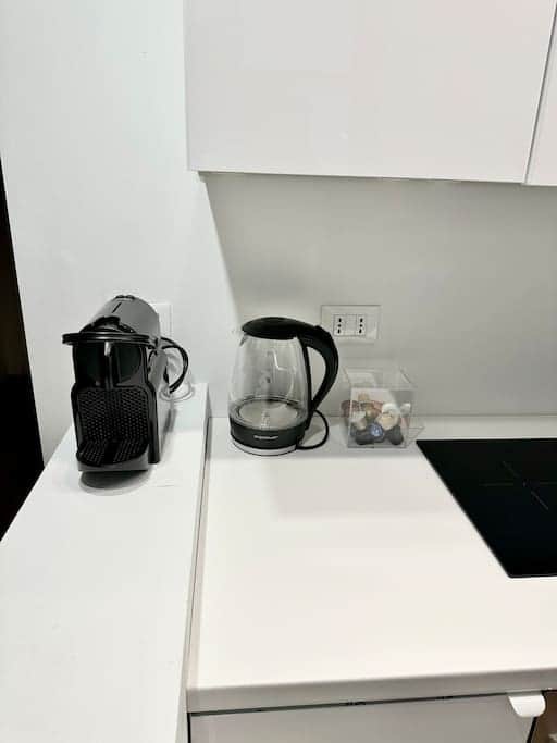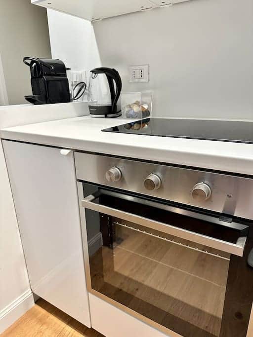 L’alloggio ha una cucina completa con frigorifero, lavastoviglie, lavatrice, macchina del caffè, bollitore.