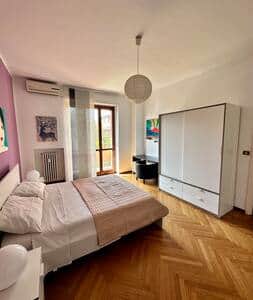 In corso Traiano, bel bilocale al 6° piano con ascensore. Sono presenti: cucina completa di forno, lavatrice, frigorifero, forno a microonde, macchina Nespresso per il caffè, condizionatore. L’appartamento è comodo al centro città (15 min in tram). Sono presenti biancheria da bagno, letto e tavola, utensili, posate, piatti, bicchieri, pentole, phon, prodotti da bagno. L’alloggio ha un soggiorno con cucina e divano letto matrimoniale, una camera matrimoniale ed un bagno con doccia.